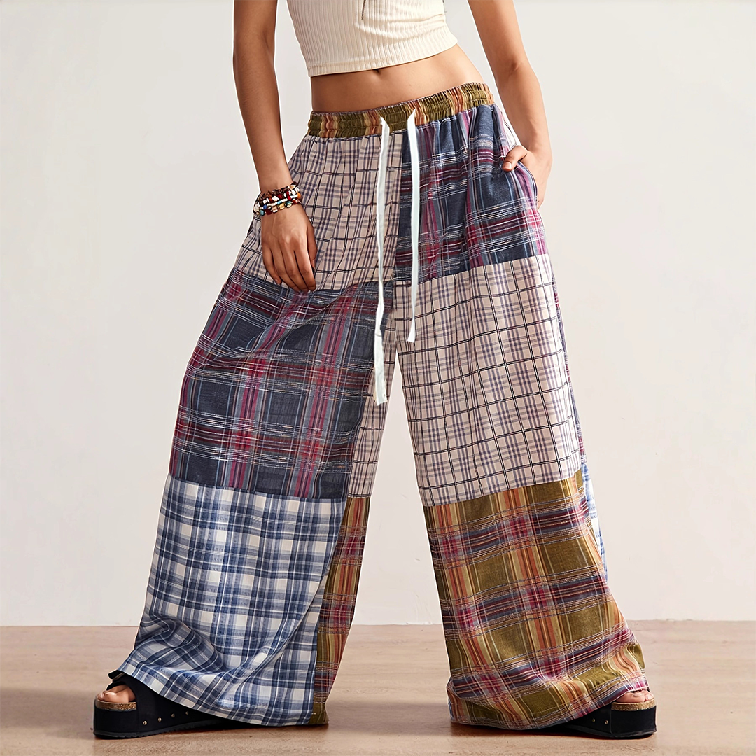 Made in United States Aesthetic: Casual and Retro / vintage Care Instructions: Machine wash Fabric: Cotton Fit: Unisex Occasion: Everyday and Loungewear Pant Length: Ankle Pant Style: Baggy Pattern: Plaid Product Language: English Weight: 226.8 g (8 oz) Product Materials: Recycled and Upcycled Packaging: Recycled Production: Ethically sourced, Fair trade, and Renewables-powered