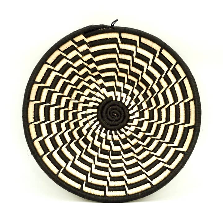 Pinwheel Ugandan Fair Trade Basket Part of the 2024 Monochrome Collection Large - 15" x 5.5" depth Medium - 12" x 4" depth Ugandan Fair Trade Basket Features: Beautiful black & natural design Made by: Crazy Love Africa Sister Artisans