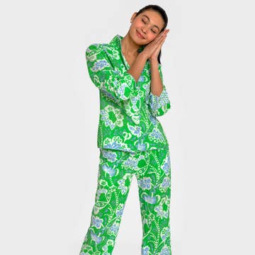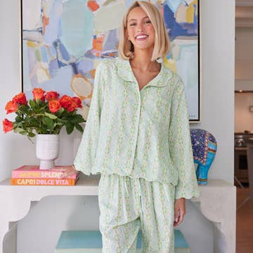 Seersucker Pajama Pant Set Green