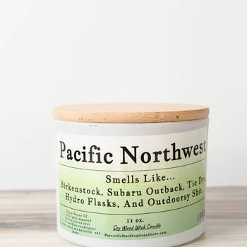 Pacific Northwest- If you’ve been with Woodsy Wicks for a while, you know PNW has been around and has been an absolute FAVORITE for some time now. It is a lovely woodsy blend that is mean to smell like a walk in the forest with a sweet musky base to round the scent off. Tree scented candle, fir candle, pine candle, woodsy candle. Size- All candles in the wilderness collection are a substantial 12 oz and have a 60-hour burn time! Lead & Zinc free cotton wick OR All-natural untreated wood wick About our fragrances- All of our oils are a blend of essential and fragrance oils that are completely clean and non-toxic and meet the highest standards. About our wax- We use 100% soy wax with NO additives! Oregon, Washington Candle