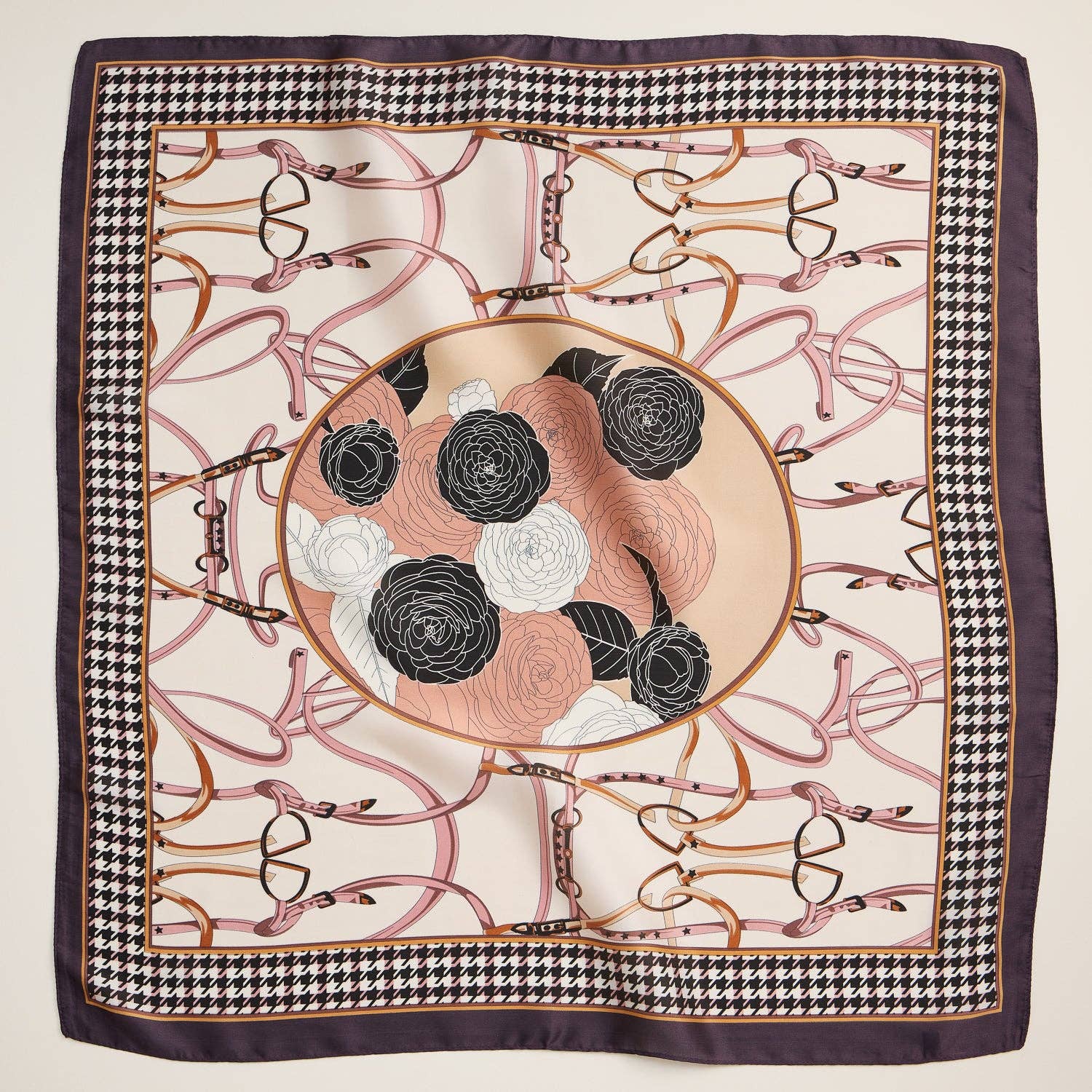 Wholesale Equestrian Print Scarf – Silk Texture Square Scarf with Vintage Saddle & Tack Design