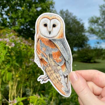 Elevate your water bottle, laptop, car, phone case, and so much more with this high-quality and adorable Barn Owl Sticker. Design painted by Oregon wildlife artist, Bekah Zeimetz. The perfect, one-of-a-kind gift for you or your loved ones to bring magic into your daily life. These stickers are: -Waterproof -UV-protected -Dishwasher-Safe
