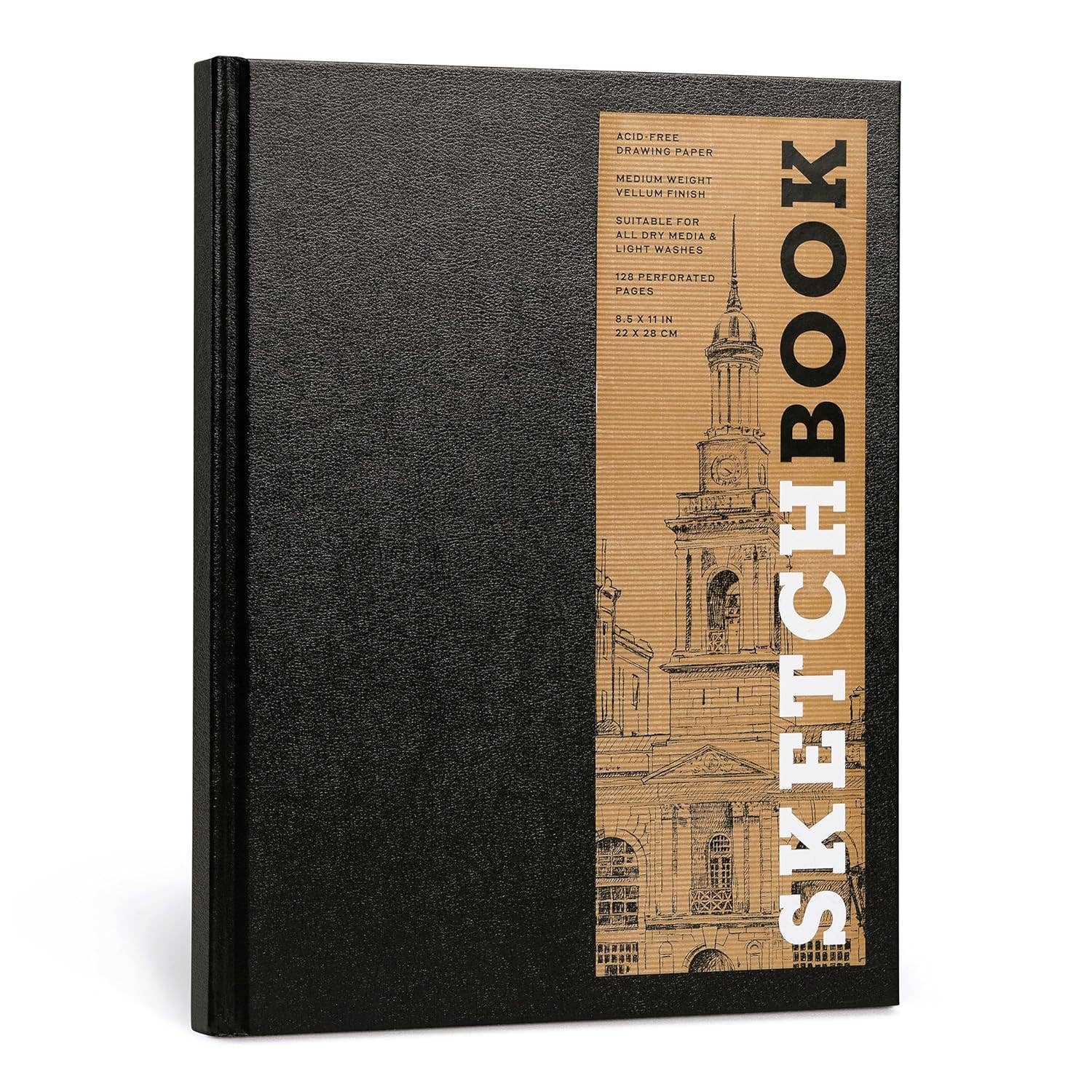 The top-selling Union Square & Co. Sketchbook series now features the popular new Kraft-cover format! With their quality paper and sturdy binding, this is the sketchbook of choice for both amateur and professional artists. Â This beautiful sketchbook contains acid-free, medium-weight drawing paper with a vellum finish that's perfect for everything from charcoal and pencil to light washes with ink and watercolor. Perforated pages make it easy to tear out "masterpieces" for framing or gift giving. All the copy (title, paper description, size, page count) appears on an attractively designed removable sticker that you can either leave on or remove for a clean, blank front cover. Paper is acid free and FSC Certified. The paperweight is 135GSM, which equates to a 90lb stock (medium weight) and has a vellum finish. Hardcover Book with Spiral; 5 1/2 x 8 inches; 128 pages.