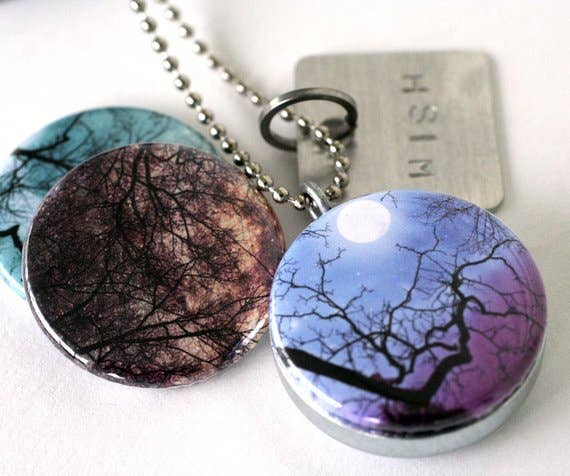 This locket is fabricated from a recycled steel car part. It has 3 interchangeable magnetic lids - so your customer gets 3 necklaces in 1 set! The locket opens to hold a photo or special note. The stainless steel ballchain is 30” and can be cut to any length. The locket is available is 1” and 1.25” options and comes in a metal tin perfect for gifting and display. Artist- Intueri