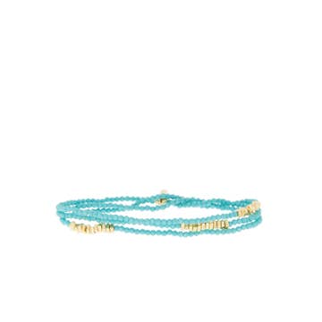The Dharma Bracelet in every color has hands down been a #1 brand best seller season after season! For the woman who thought she had everything, she's met her match! It layers, it makes a simple statement, drapes beautifully, and never goes out of style. Our retailers say that their customers collect them, never take them off, give them as gifts, and keep begging for more options. Bold yet effortless, the Dharma bracelet is a grounding presence on the wrist. Rich blue beads form a rhythmic circle, punctuated by a contrasting focal bead with golden accents. A trio of petite charms adds movement and meaning, creating a piece that layers beautifully or stands alone with quiet confidence. Stretch fit for ease, designed for everyday wear. We have partnered not only with Anthropologie, Anthropologie Europe, and Neiman Marcus, but 600+ additional retailers nationwide, and we’d love to partner with you next! Woman owned. Handmade in the USA.