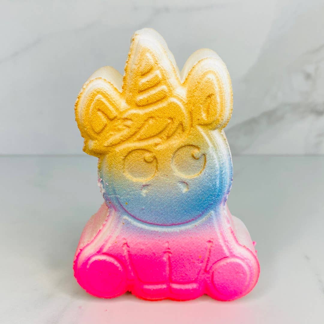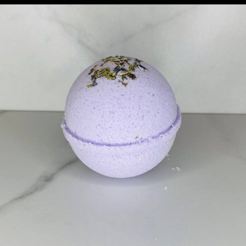 Cloud bath bomb with colorful embeds inside. Approximately 6 ounces. Ingredients: Baking soda, Citric Acid, Poly 80, SLSA, FD&C Lake Colorant, Sweet Almond Oil, Cream of Tarter, Rice Bran Oil, Witch Hazel and Fragrance Oil.