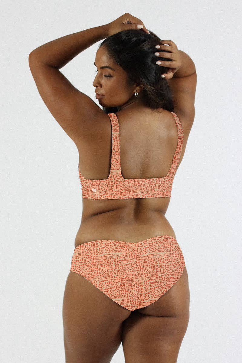 Like mom jeans, only better. The most popular bikini on the block these days–you need a high-waisted bikini bottom in your collection. Nika is a classic with a seamless waistband for superior comfort. The leg has a slightly french cut in the front and rounds out to have moderate coverage in the back. Nika is a bombshell. Wear her and feel contained, covered and empowered. Nervous about a high-waisted bottom? We're telling ya–you're going to love the coverage and sass. UPF 50+ High waisted swimwear bottom French cut Made in the USA of recycled fabrics Seamless waistband Buttery smooth fabric More Info Nika (in Deep) is wearing a size medium. Taylor (in Cabana) is wearing a size x-large.