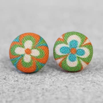 Ketchup and Mustard Fabric Button Earrings
