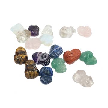 This is for a mystery set of 5 mini crystal skulls. The price listed is for 5 total crystal skulls. The price listed at checkout is for the quantity. Example: 10 equals 10 Total skulls 25 equals 25 Total Skulls. Each order will be hand selected randomly and may include any of the following materials : quartz, rhodonite, rose Quartz, moss agate, aventurine, obsidian, amethyst, flower agate, carnelian, fluorite, Jasper, agates, moss agate, and many more! mini crystal skulls measure approximately 1”-1.5”