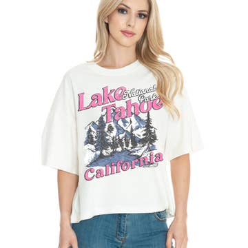Wholesale Lake Tahoe T-Shirt - Retro Sunrise Adult California T Shirt