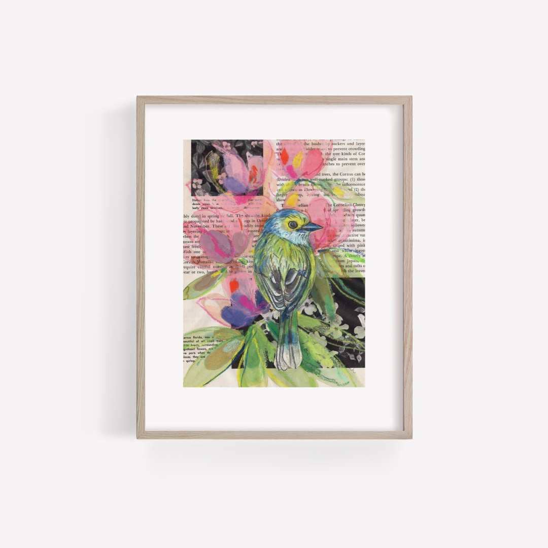 Marydean Draws - Wholesale Art Print - Rifleman Bird Painting on Gardening Book Page Print, 5x7