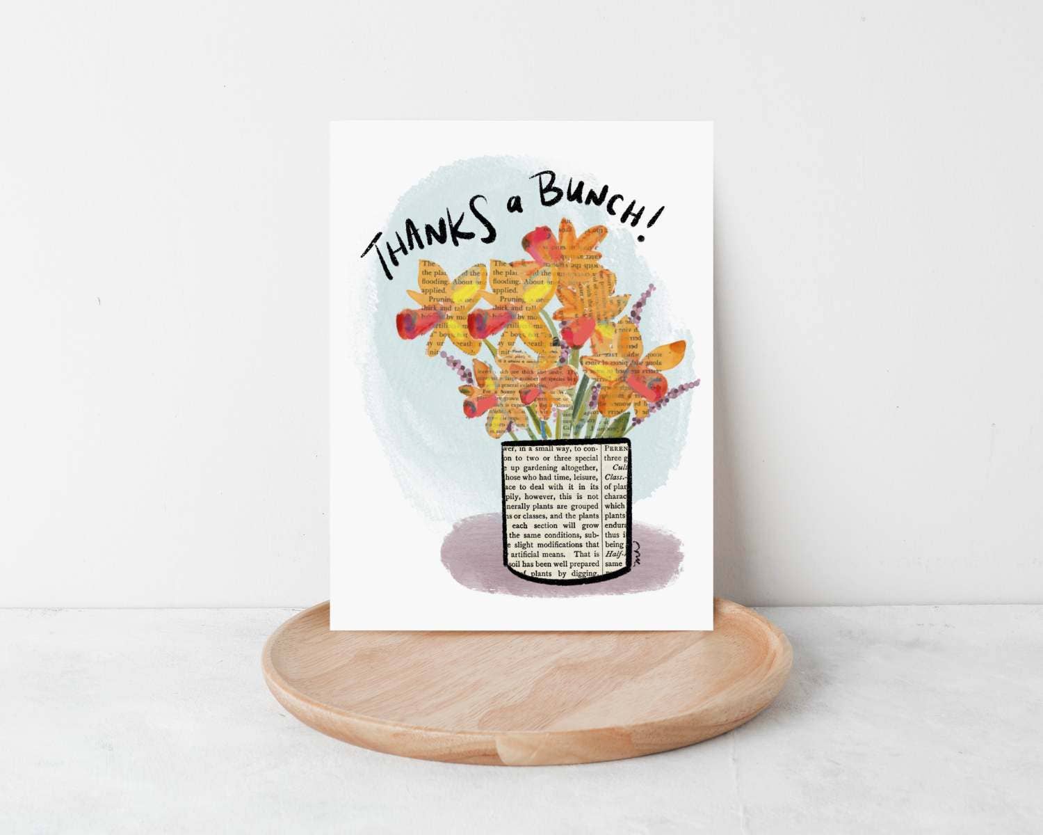 This 5x7" print is made with watercolor, pencil + Nupastels on a vintage gardening book page. ABOUT THIS PRINT: • printed locally in Virginia by Campbell Print Center on thick matte paper • unframed and unmatted • packaged in a cello sleeve with a cardboard insert for easy store display © Marydean Hairston 2020