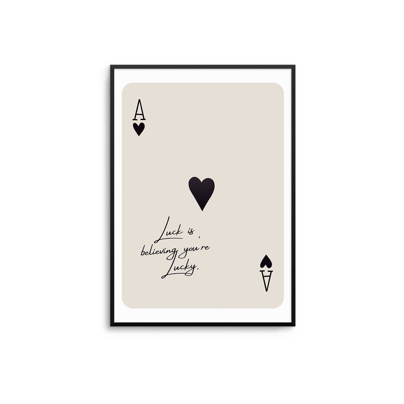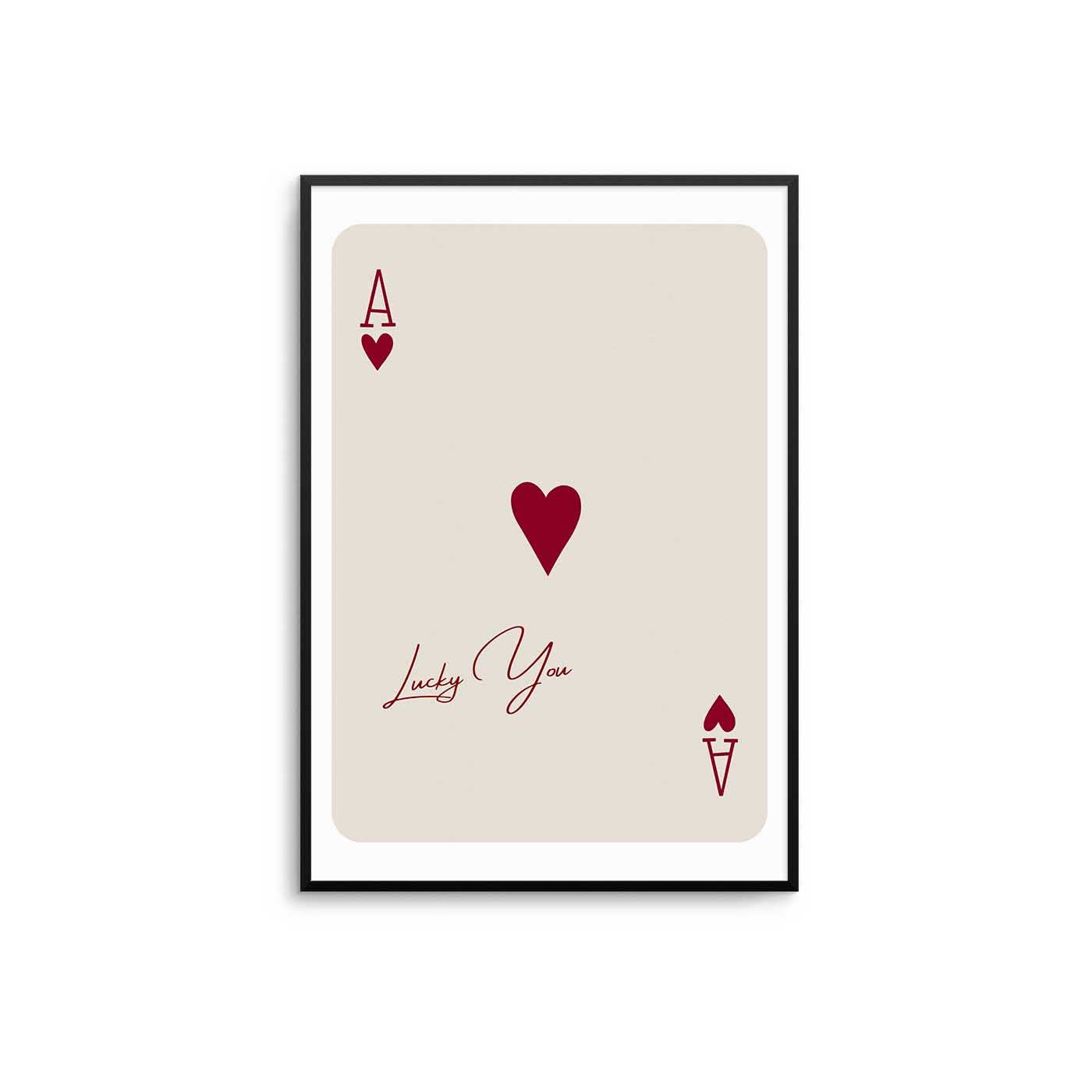 Featuring the phrase “Together We Have It All”, this print pairs clean, modern typography with the symbolic Ace of Hearts motif. Available in black or brown text on a warm beige backdrop, the design works seamlessly in both minimal spaces and more styled interiors. Choose White Border for a framed, defined finish, or Borderless for a contemporary full-bleed look. Printed on 230gsm museum-quality matte archival paper, made to order in the UK. Details: • Printed on 230gsm matte archival paper • Choice of Black or Brown text • Warm beige background • Available Borderless or with White Border • Sold unframed (frames shown for styling inspiration) • Printed to order in the UK • Available in multiple sizes • Suitable for bedrooms, living rooms, entryways and gifting Custom Colour Requests: Custom colour prints are non-refundable as they are made to order. If you would like a different text colour or background tone, please leave a note in the order notes box with your request. All prints are sent in a card hard backed envelope up to size A3 or postal tube for bigger sizes to ensure safe delivery. Please note, the frame is not included. Other sizes available on request - please contact us with your size requirements.