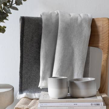 Dublin Alpaca Wool Throw - Grey with Ivory Stripes