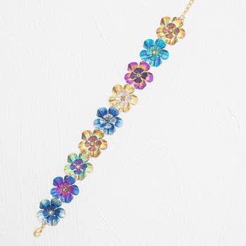 The Izzy Bracelet in Smutt Rainbow is sure to be a standout item in your jewelry collection. Classy without being too stuffy, it's the perfect balance of Smutt plating, brass-based metal, and sparkling high quality crystals. Crafted with care in Canada, it's "Made in the North" style at its finest. This bracelet is a dainty yet statement-making accessory!