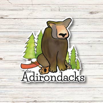 2.5" x 3.5", cut to size. Glossy vinyl. To order more than 19, you must choose "19+" from the quantity drop-down, and then edit the number for the quantity you desire. In the Mohawk language, Adirondack means porcupine, an animal that may eat bark. The Adirondack Park is a part of New York's Forest Preserve in Upstate New York, United States. This area contains 102 towns and villages, as well as numerous farms and businesses. In 1884, a commission chaired by botanist Charles Sprague Sargent recommended establishment of a forest preserve, to be "forever kept as wild forest lands." Original artwork by Catherine LaPointe Vollmer.