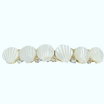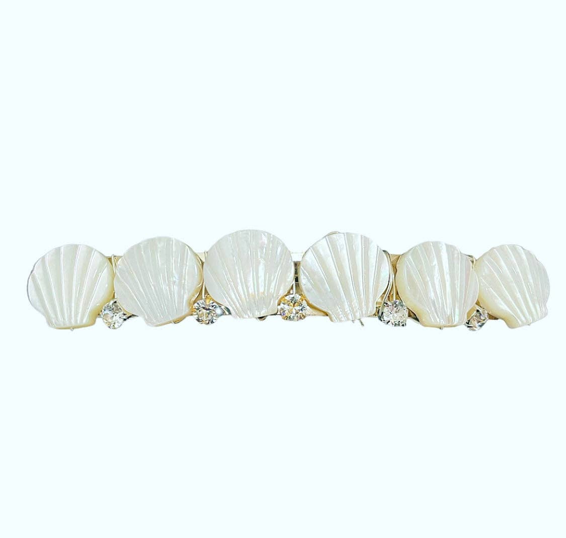 The inside of oyster shells contain a unique black lip shell and our designers are excited to showcase this new material in our fair trade wholesale Chandra Collection. Artisans collect and piece together discarded shells into fine fair trade jewelry and accessories. This hair pin with stick can be used to clip hair back or up for a stylish, effortless hairstyle. Dimensions: 3.5"L x 2.25"W All of Matr Boomie's collection is handmade, fair trade and sustainable. Great stocking stuffer! Great Mother's Day gift!