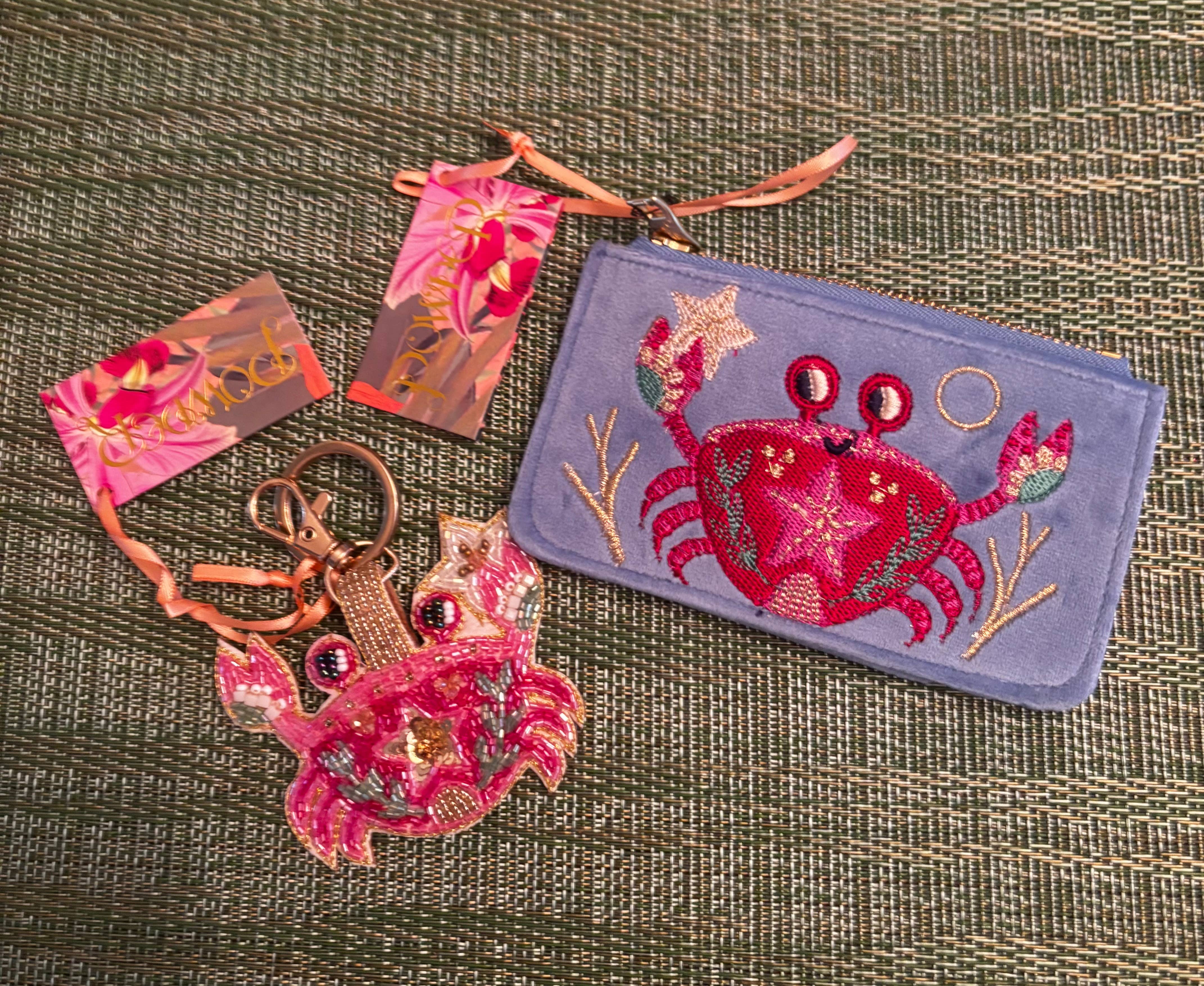Whimsical and wonderful! Our seafaring crab keyring features beautifully delicate beading with a delightfully vibrant colourway. This can be used as both a keyring and a bag charm which makes it perfect for novelty gifting or adding luxury to your everyday! Fabric: 100% Modal / Shell: Metal / Back: PU / Japanese Miyuki Beads.