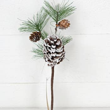 Bring a touch of winter to your holiday décor with this Mini Snowy Pine Cone Spray. Perfect for decorating Christmas trees, seasonal arrangements, holiday centerpieces, porch pots, wreaths, and more, it enhances any festive display. Featuring clusters of realistic mini plastic pinecones tipped with faux snow, each spray is attached to a coated brown wire stem. Total pick length: 9-1/2" (bottom of stem to top of branch) Mini pinecones: 3/4" long Designed for both indoor and outdoor-covered use, the spray is a great way to add natural beauty to all your holiday creations.