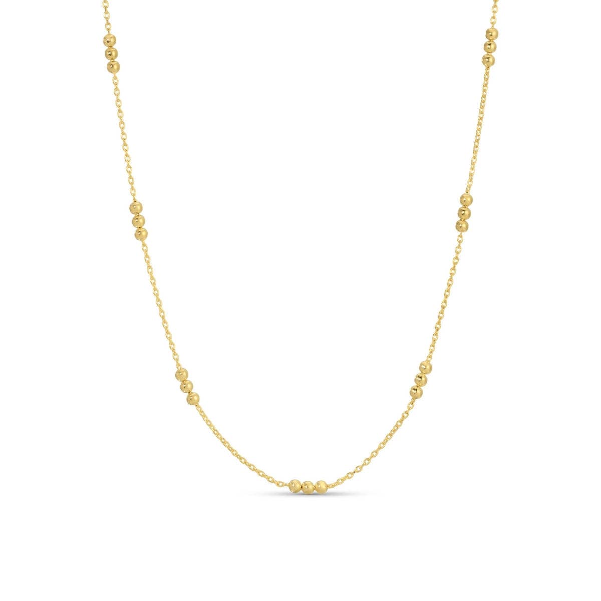 Two rows of round beads carefully wrapped on both side of paperclip links with double chain at the end. Gold filled setting Length: 16-18" adjustable Handcrafted at Mabel's San Francisco atelier.