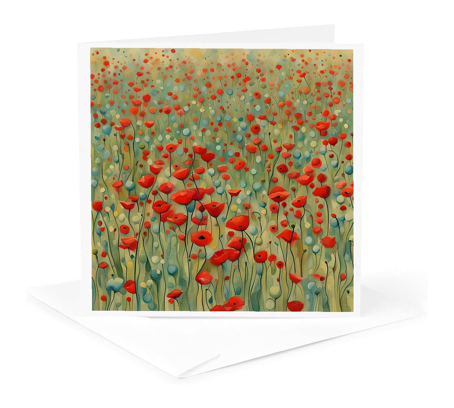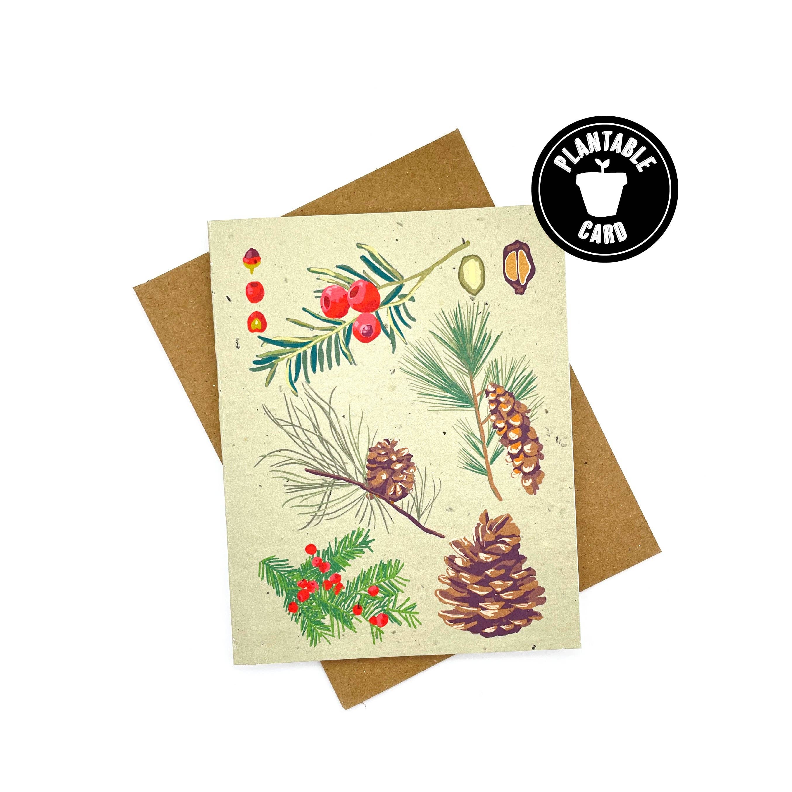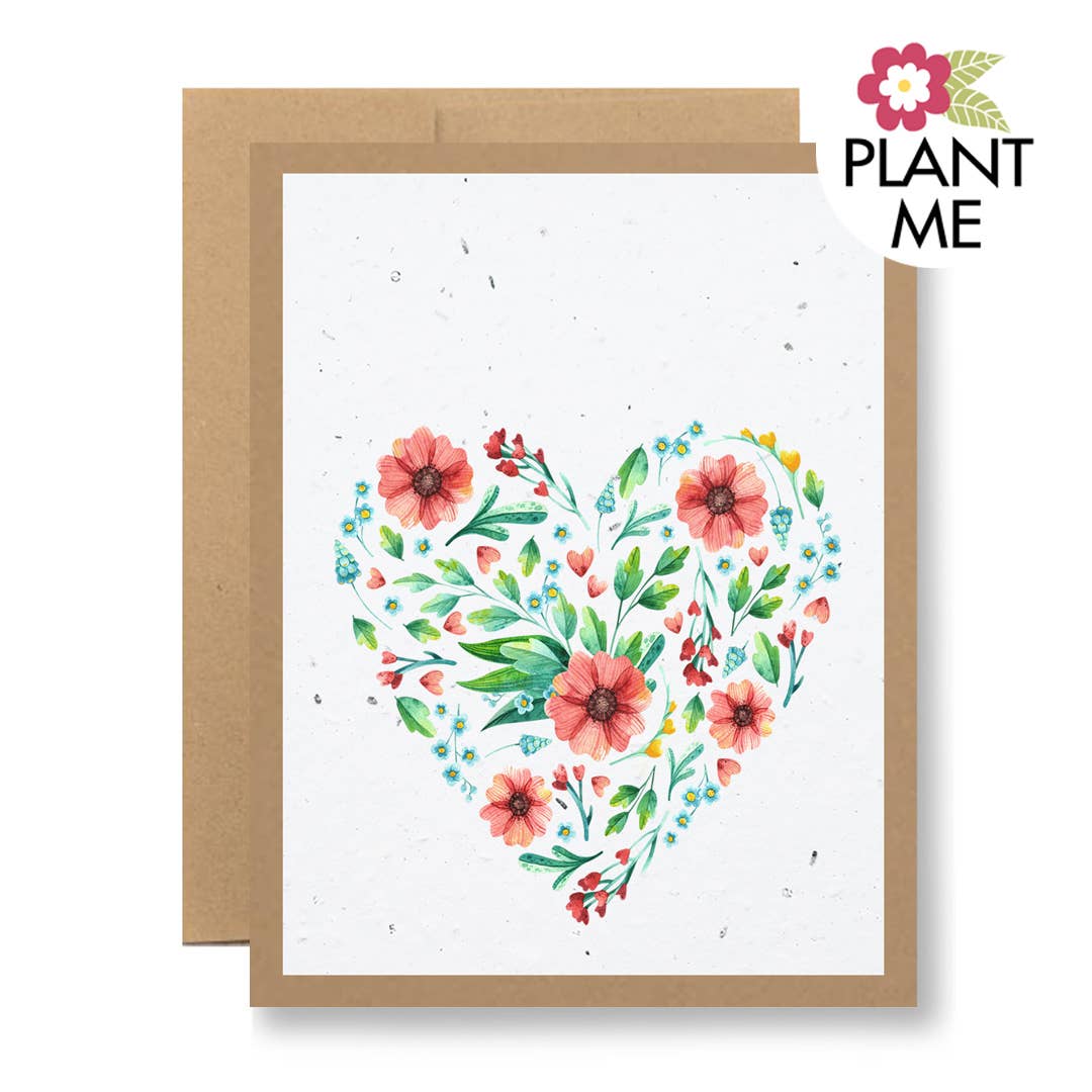 PLANTABLE CARD WITH ENVELOPE - Card contains embedded wildflower seeds that grow when planted - Printed on paper made from 100% Post-Consumer Fiber - Recycled paper bag square flap Envelope - Plant-based, biodegradable clear card sleeve BLANK INSIDE - A-2 sized folded card (4 1/2" x 5 1/2") - A-2 sized Envelope (4 3/8" x 5 3/4")