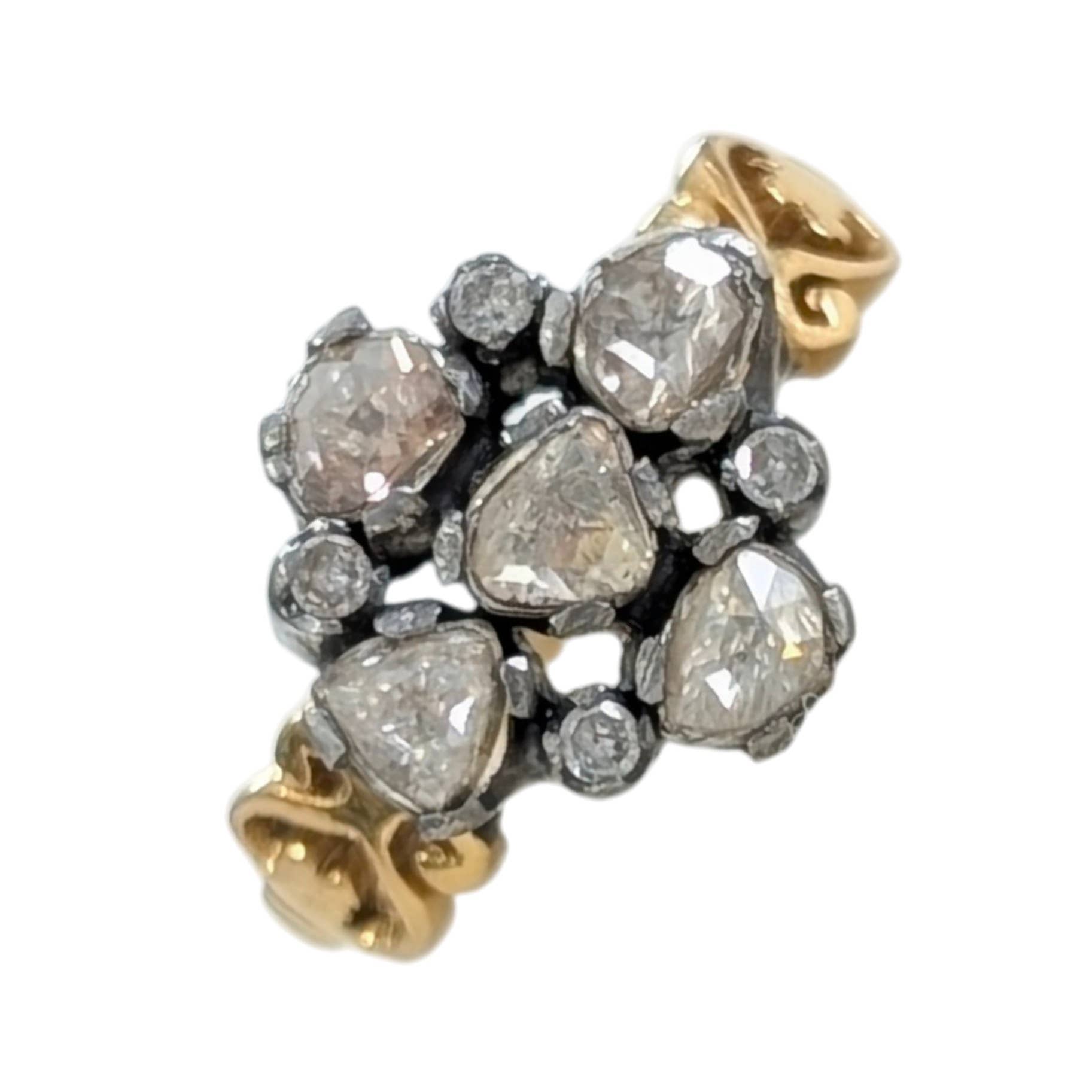 This ring is hand carved in wax and cast in sterling silver using the cast in place method in the lost wax casting. Materials: Sterling silver and CZ.
