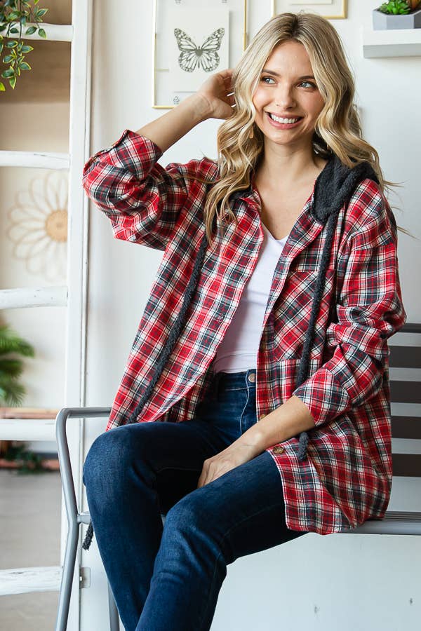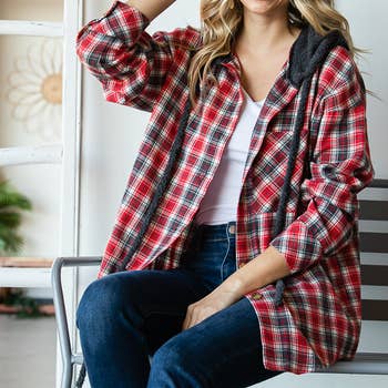 Women's oversized Plaid Shirt with Hoodies for wholesale on Faire