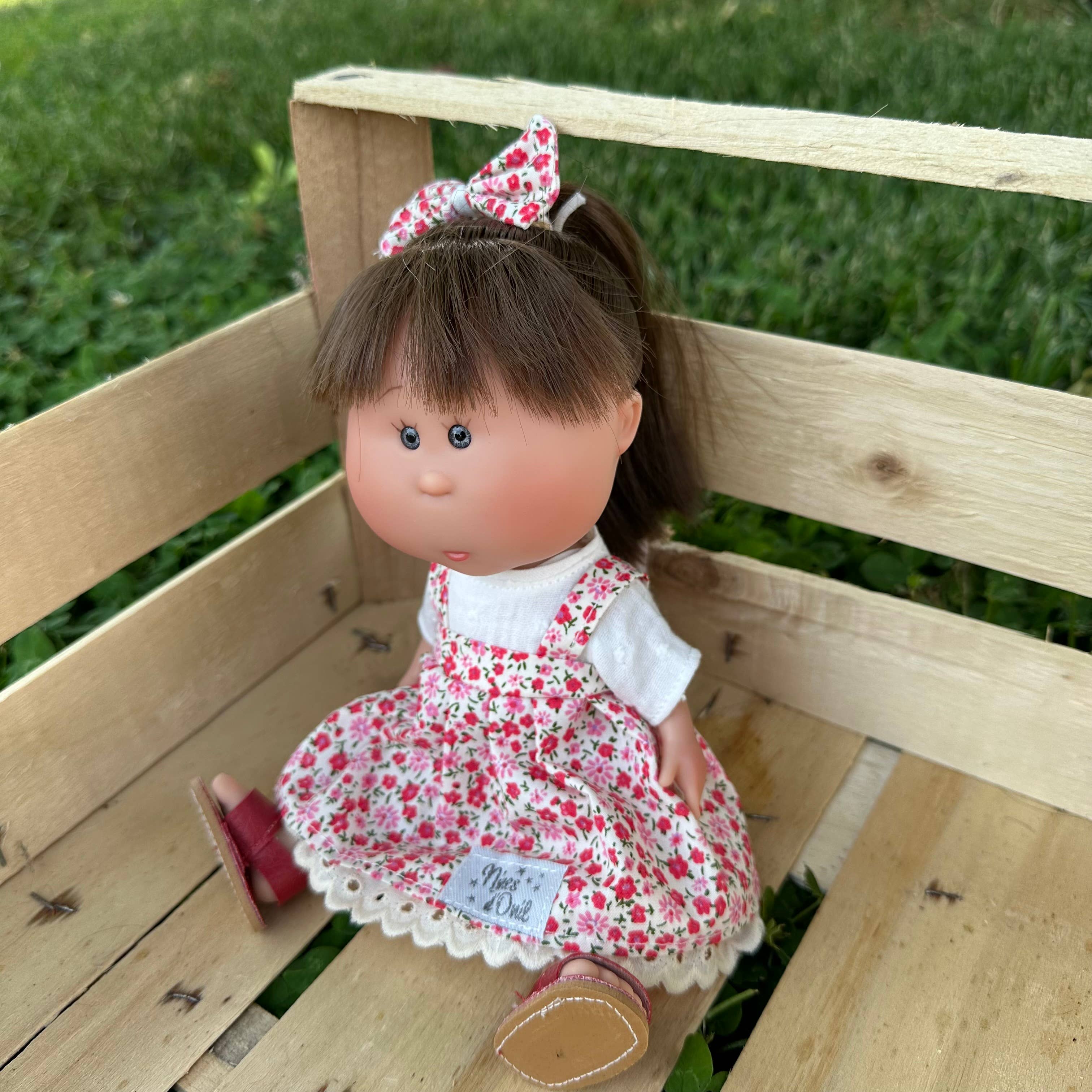 Our Little Mia & Mio dolls are 23cm tall and their bodies are completely made of vinyl, so they can be bathed. Special features: They are collectible. Each Little Mia has its own essence, personality, and style. Display presentation assorted with other Little Mia&Mio in 8 units. Presentation for the USA: will be in a plastic bag to avoid damage on such a long journey. Educational value: It is a doll that promotes symbolic play, helping to develop qualities such as emotional value and the expression of feelings. It also stimulates language, imagination, and autonomy. The Mia and Little Mia collection is a perfect product for creative play, allowing you to choose from many different styles. Additionally, their hair (always silky) allows you to create many different hairstyles. As for Little Mia, its 23cm size makes it a portable and practical doll.