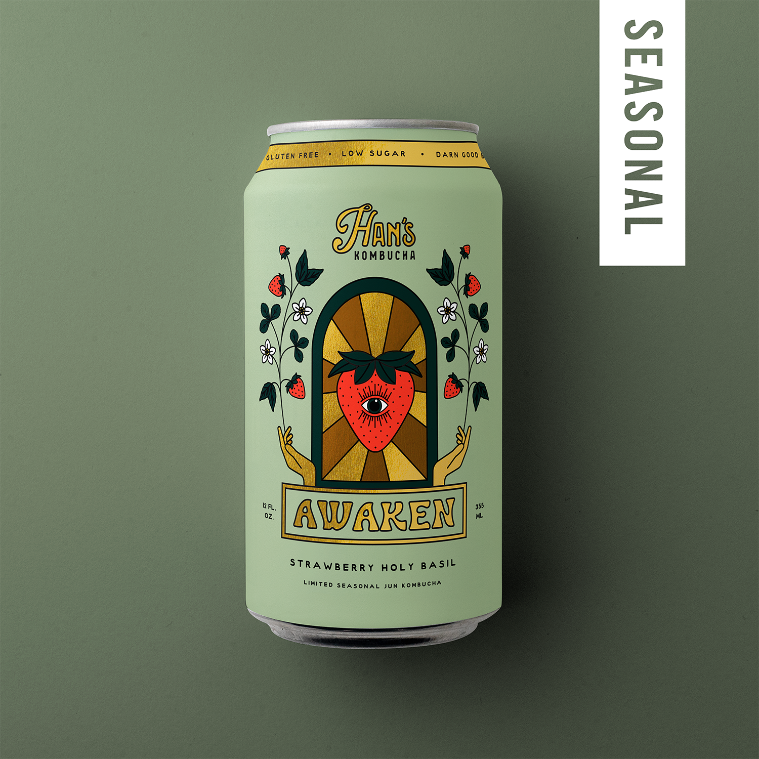 Awaken Strawberry Holy Basil Kombucha