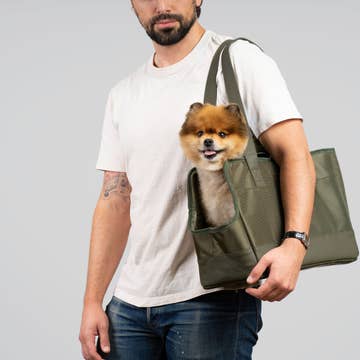 Dog Carrier Bag - Olive Green Waxed Canvas and Leather