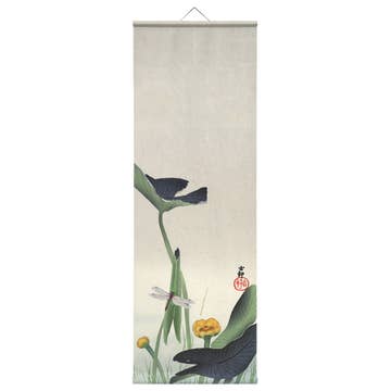Premium digital fabric print 220g/m2 (sublimation printing, recycled fabric), Lasered wooden sticks with swan necks with satin ribbon hanger Up to 70 years lightproof (interiors), scratch-resistant, waterproof, brilliant photorealistic print, OEKO 1 certified at the highest level, solvent-free. Produced with 100% green electricity. Handmade with love in Berlin.