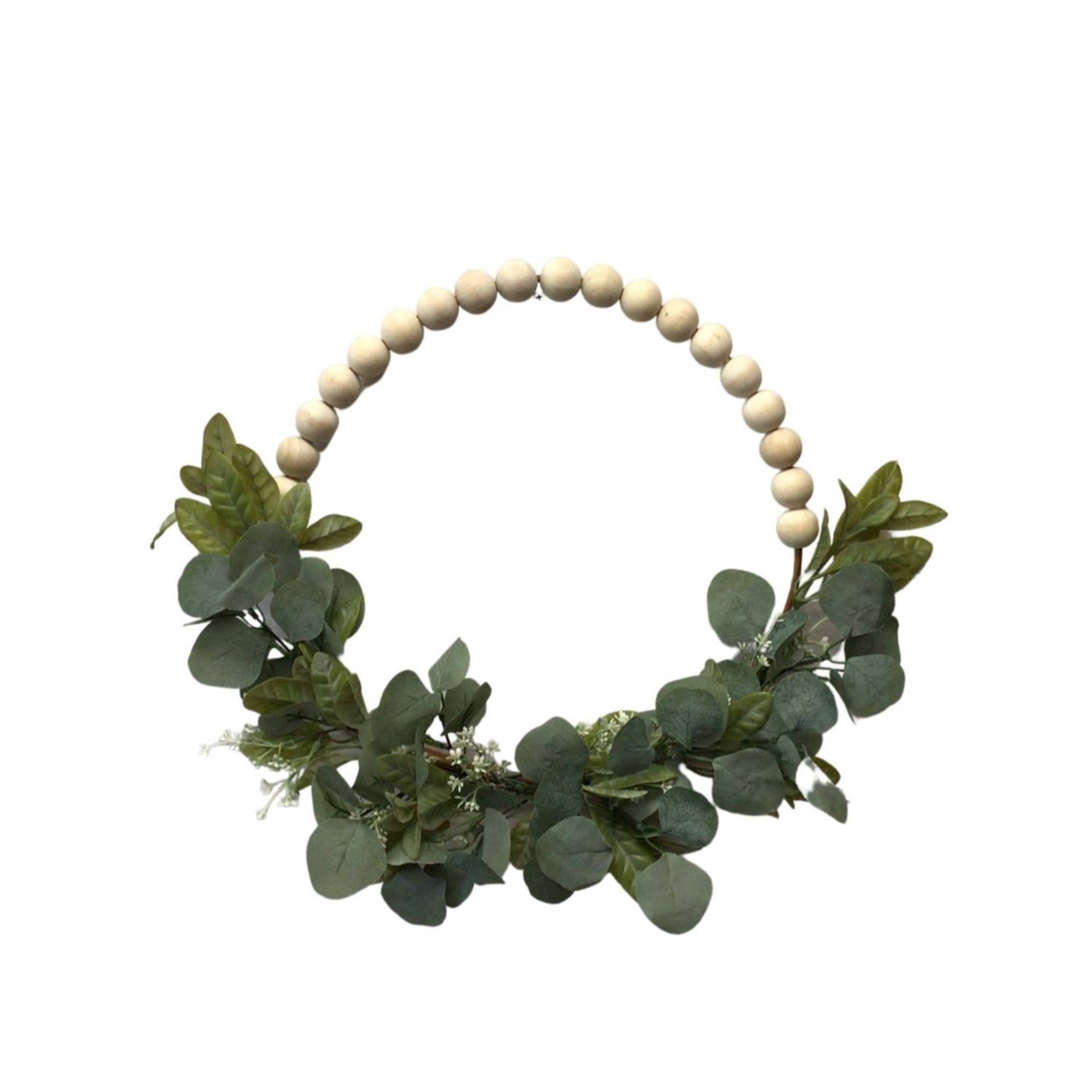 Boho Chic Wood Bead Eucalyptus Wreath 20"