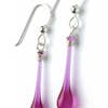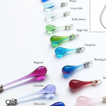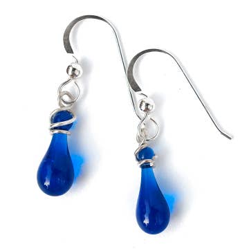 A large pear shape of recycled sterling silver frames a long drop of vibrant sun-melted glass. Like the striking antherium lace leaf flower they resemble, the graceful contours and bold colors of these earrings make them unforgettable. - Earring length: 2 3/8" (6 cm). - Eco-friendly jewelry, made from sun-melted recycled bottles and stained glass, finished with recycled silver - Recycled sterling silver findings are nickel free and hypoallergenic - Lightweight and comfortable to wear - Handmade in the USA Sunshine in a drop of glass... Each drop of glass is handmade in the artist’s backyard studio in Berkeley, California. Using a giant magnifying glass to focus sunshine, recycled bottles and stained glass were melted into these translucent, flowing drops under the open sky! No pieces are exactly alike. Tarnish-resistant Argentium sterling silver is easy maintenance, with a brighter, whiter color than traditional sterling silver. And, it is 100% recycled!