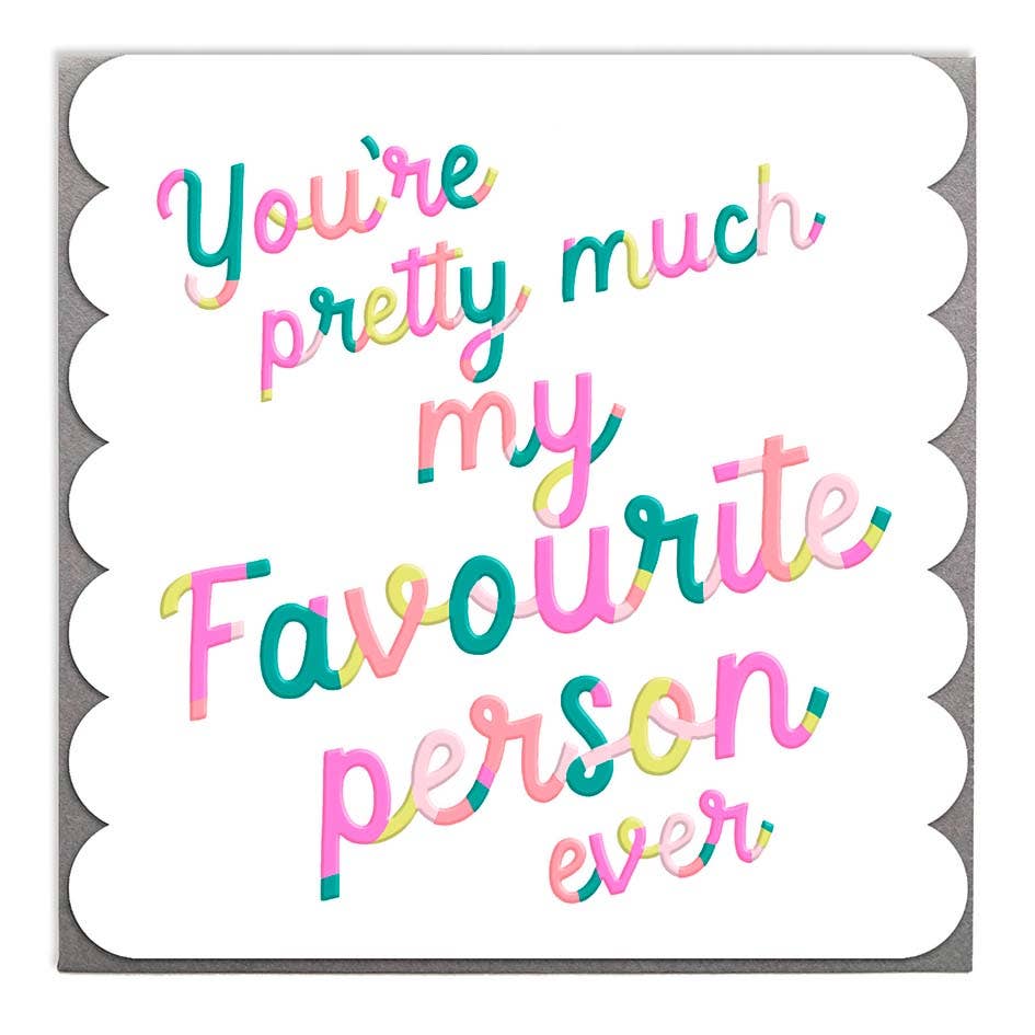 This fun card features bright neon colors and lovely texture thanks to the emboss and spot UV over the text. The perfect card for that good friend's special day. Printed on heavyweight FSC board and finished with spot colors and spot UV. Hola neon.