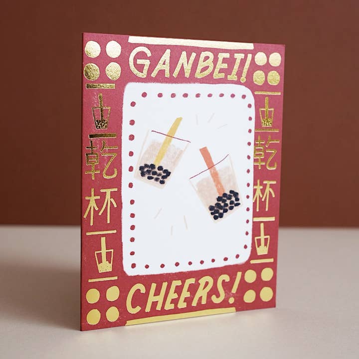 Gold foil 4.25 x 5.5 inch size Comes with matching envelope Printed locally in Los Angeles on soft white, FSC-certified stock that is also milled in the USA Blank inside Compostable plastic sleeve made of plants