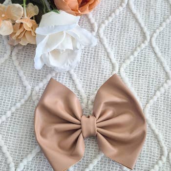 The perfect accessory for everyday or party look. 100% organic cotton in blush. Silver-tone alligator clip with teeth. The bow measures approximately 4.5 x 5.0 inches * Due to the nature of our handmade bows each bow may look slightly different. * This hair accessory is not a toy, we recommend not to play with it. It may contain small parts that potentially could be dangerous to small children, please supervise your child while wearing our hair accessories. Pack dimensions: 5 x 7
