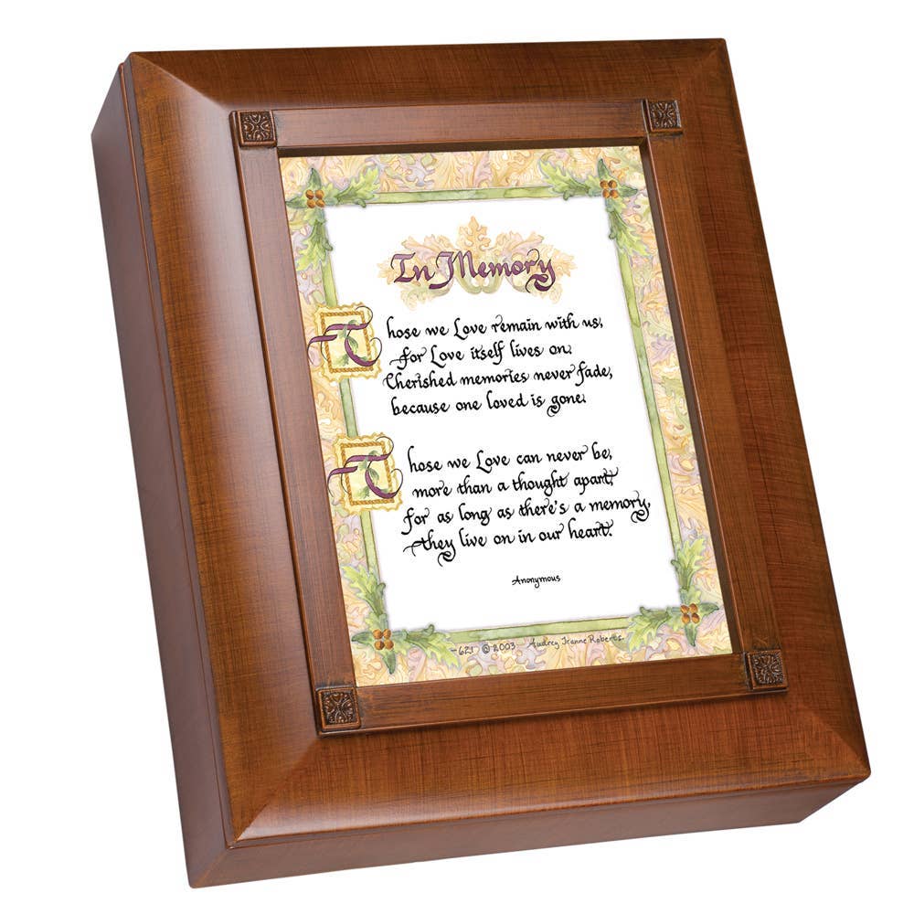 These memory boxes are made of wood composite and come complete with a removable lid. The lid features full color artwork printed directly onto the wood. Designed and printed in the USA!