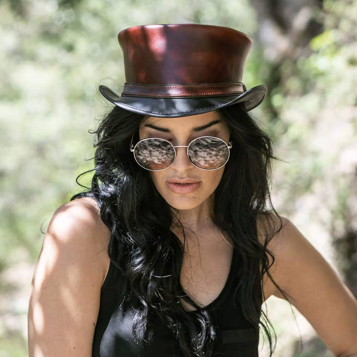 Biker Leather Top Hat - Style Royal Skull