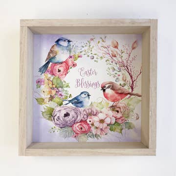 A family of colorful birds sit atop a tree branch, surrounded by flowers on the "Be Happy Birds" wall hanging plaque. The plaque is made in the USA with earth-friendly resources. It is made from lightweight wood, at 1/8" thick. Your new wall hanging will arrive ready to hang with a sturdy ribbon. Just a hint of glitter was painted on the wall hanging, allowing the light to capture it perfectly.