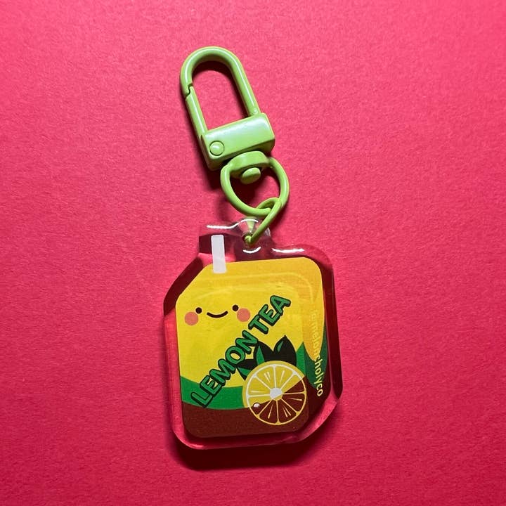 This adorable 2-sided keychain features a popular drink! This product is an acrylic keychain with domed epoxy front and back. Size is approximately <1" x 1.5" Adorned with a gold colored metal key clasp.
