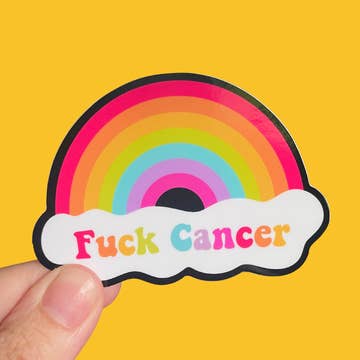 Durable vinyl sticker with bold, funny sayings shoppers love! Perfect for laptops, water bottles, notebooks, and impulse gifting. A bold, tattood female hand with of a powerful awareness message and gesture. Design: Fuck Cancer (female) Size: 3" x 2.5" • Thick Durable Vinyl • Strong Adhesive Back • Sun and Rain-Proof • Scratch-Resistant • Protective Laminate Finish • MADE in USA