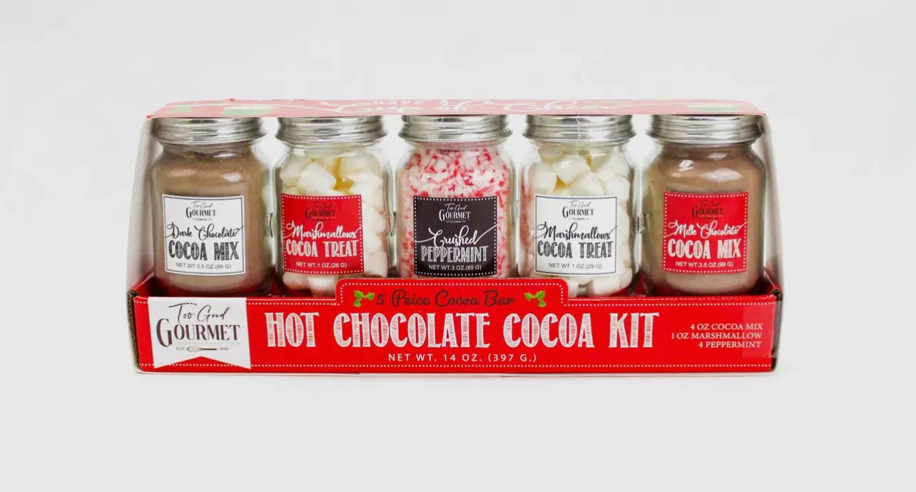 Create the ultimate Hot Chocolate Cocoa Bar experience in one festive package! This treat includes rich dark chocolate cocoa mix, creamy milk chocolate cocoa mix, fluffy marshmallows, and crushed peppermint—everything you need for cozy winter nights, holiday parties, and gift giving. This all-in-one hot cocoa kit is as long as your arm and makes a delightful holiday gift, Christmas stocking stuffer, or winter drink station centerpiece. Perfect for family gatherings, corporate gifts, or seasonal retail displays. Key Features & Attributes: ✅ Complete Hot Chocolate Kit – Dark chocolate cocoa, milk chocolate cocoa, marshmallows, and crushed peppermint all in one. ✅ Generous 14oz Size – Oversized “cocoa bar” design that’s fun and shareable. ✅ Gift-Ready Packaging – Retail-ready and perfect for holiday gifting, hostess gifts, or corporate giveaways. ✅ Seasonal Best-Seller – Ideal for winter parties, Christmas celebrations, and cold-weather gatherings. ✅ Wholesale Friendly – Great profit margin and eye-catching for boutiques, gourmet shops, and gift stores. 14oz. Order Now: Will Ship Between September 1st through the remainder of the year.