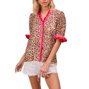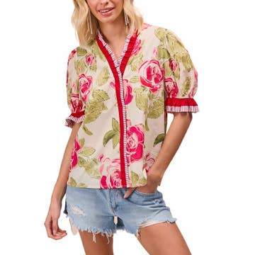 Printed Button Up Frill Collar Babydoll Blouse CY127