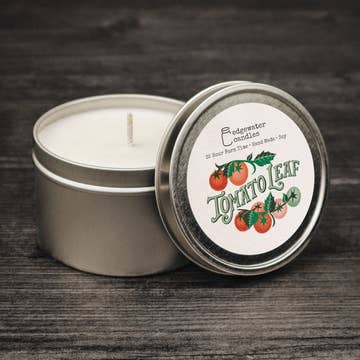 If sunshine had a smell, this would be it! Breathe in the bright, fresh fragrance of gently rubbed tomato leaves, fresh off the vine. Breathe in again and discover subtle notes of arugula and jalapeño. The airy aroma of luscious green garden goodness with soft moss and a hint of citrusy bergamot brings a splash of summer to any season. 6oz Travel Tins are perfect for smaller spaces or to add to your overnight bag. All of our candles are hand poured in small batches using all-natural soy wax. Travel Tins burn for approximately 35 hours. 3⅛"w x 2"h.