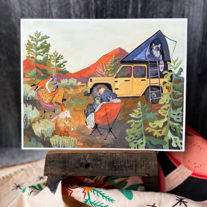 Sunset Ski Print is a reproduction of my original gouache painting; wolf, moose and raccoon are chillin out on their final ride up the ski lift after a long day on the mountain. Perfect for any winter sport enthusiast or to hang on the walls of a cabin in the mountains. Printed on Premium Presentation Matte Paper using high quality inkjet inks and signed on the front. Your print will be carefully packaged with an archival backing board in a protective cellophane cover, then wrapped in bubble wrap all inside a rigid mailer to ensure it's protected during shipping. All of my prints are currently available in either 8”x10” or 11”x14” - please choose your desired size. I attempt to ship out all orders as quickly as possible, but ensure that everything is shipped within a maximum of three business days. P-4053/P-5053 Thank you for shopping at Little Pine Artistry!