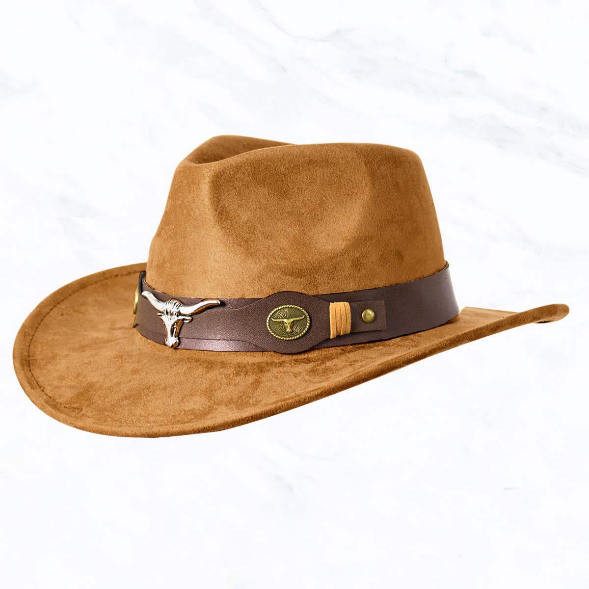 Effortlessly chic and sophisticated, this cowboy hat features a distinct western heart buckle design. This cowboy hat is the perfect way to add a touch of elegance to any outfit. Available in BK, BKS, IV, BR, BRG, BRS, BUG, KA, KAS, OLS, RUG, RUS and SBR. This item is sold in packs of 1. This cowboy hat is made with 90% Polyester and 10% Alloy.