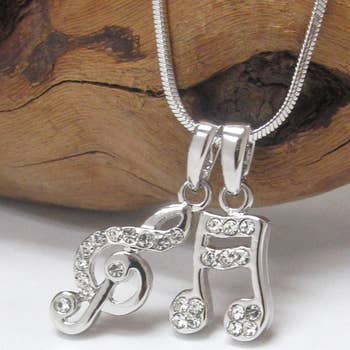 This decorative necklace comes on a stainless steel chain and 18 inches. Each necklace includes a crystal accent bead in white and an accent heart. Our charms are 100% hand made with American pewter.