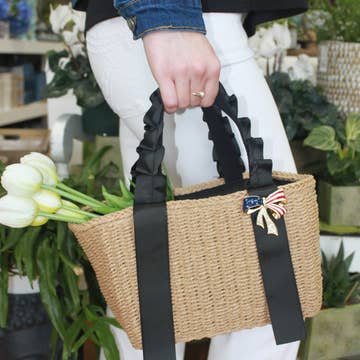 Striped Rattan Straw Ring Handled Wicker Basket Hobo Bag Dimensions: 16" * 15" Content: 100% Wicker Wipe Clean With Cloth -California State Prop 65 Warning