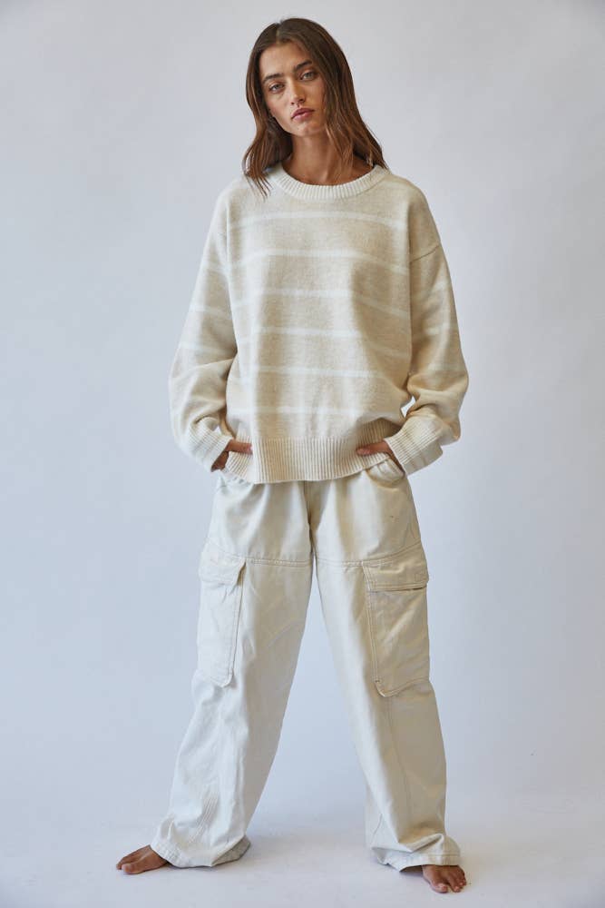 NSW2569-Relaxed Boyfriend Fit Crew Neck Sweater
