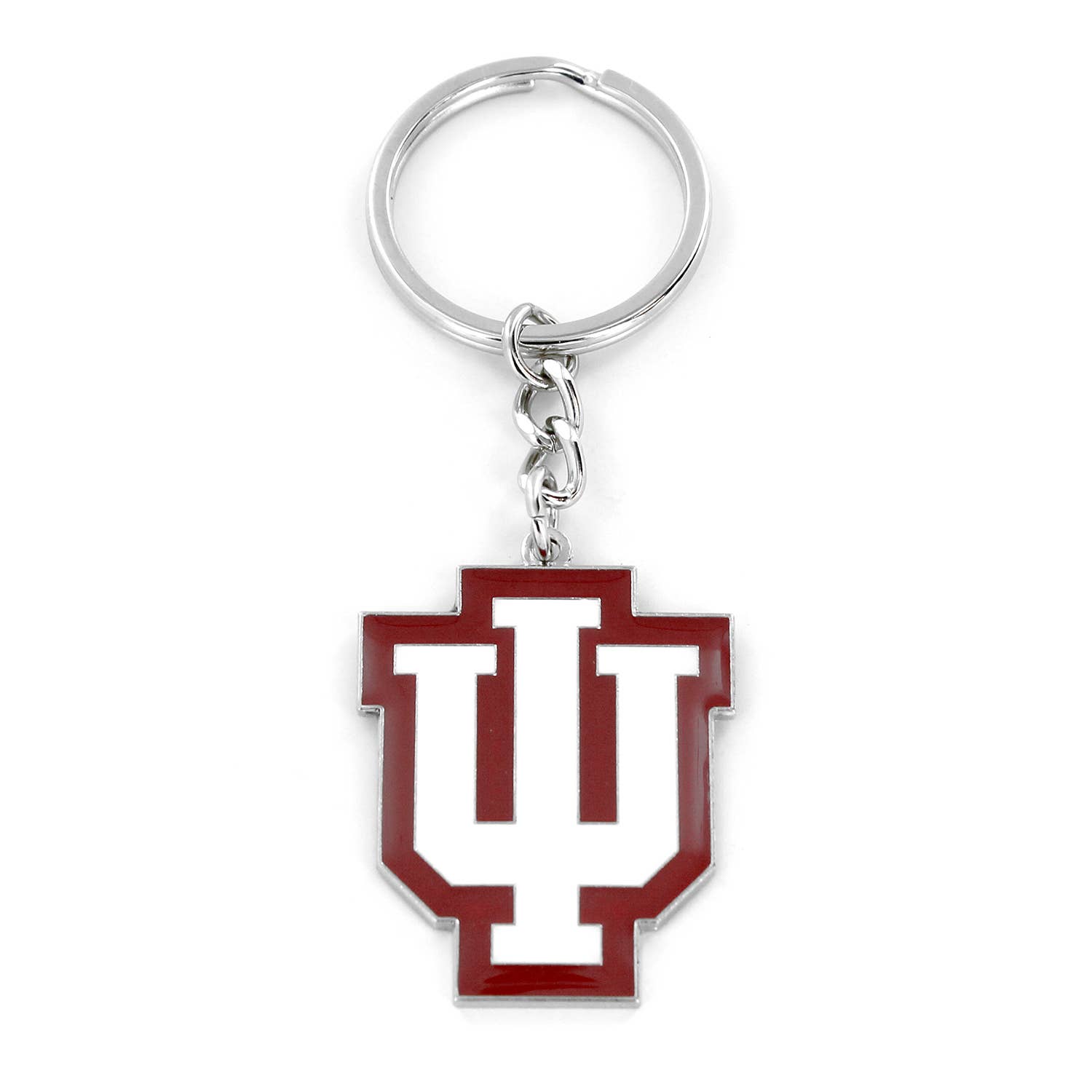 Represent the Hoosier State with our Indiana State Keychain, shaped like a map and paying homage to the state's rich agricultural heritage. It features Clark Shrine, Fort Wayne and Indianapolis. MEASUREMENTS: Charm is 1 1/2” long and is secured on a 1” bronze keychain. ARTISAN TOUCH: Our skilled artisans hand-paint each charm in Denver, CO and assemble each accessory with care. HYPOALLERGENIC: All our accessories are lead-free and nickel-free.